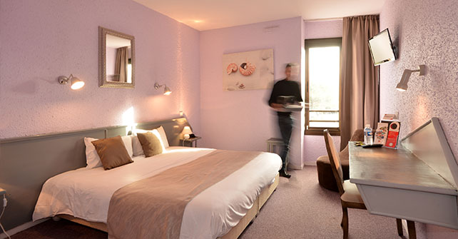 L’hôtel Le Teinchurier vous accueille 7J/7 et 24H/24, vous propose 40 chambres de grandes tailles, literie haut de gamme, personnalisées, climatisées (36) et insonorisées réparties sur 3 étages avec ascenseur :